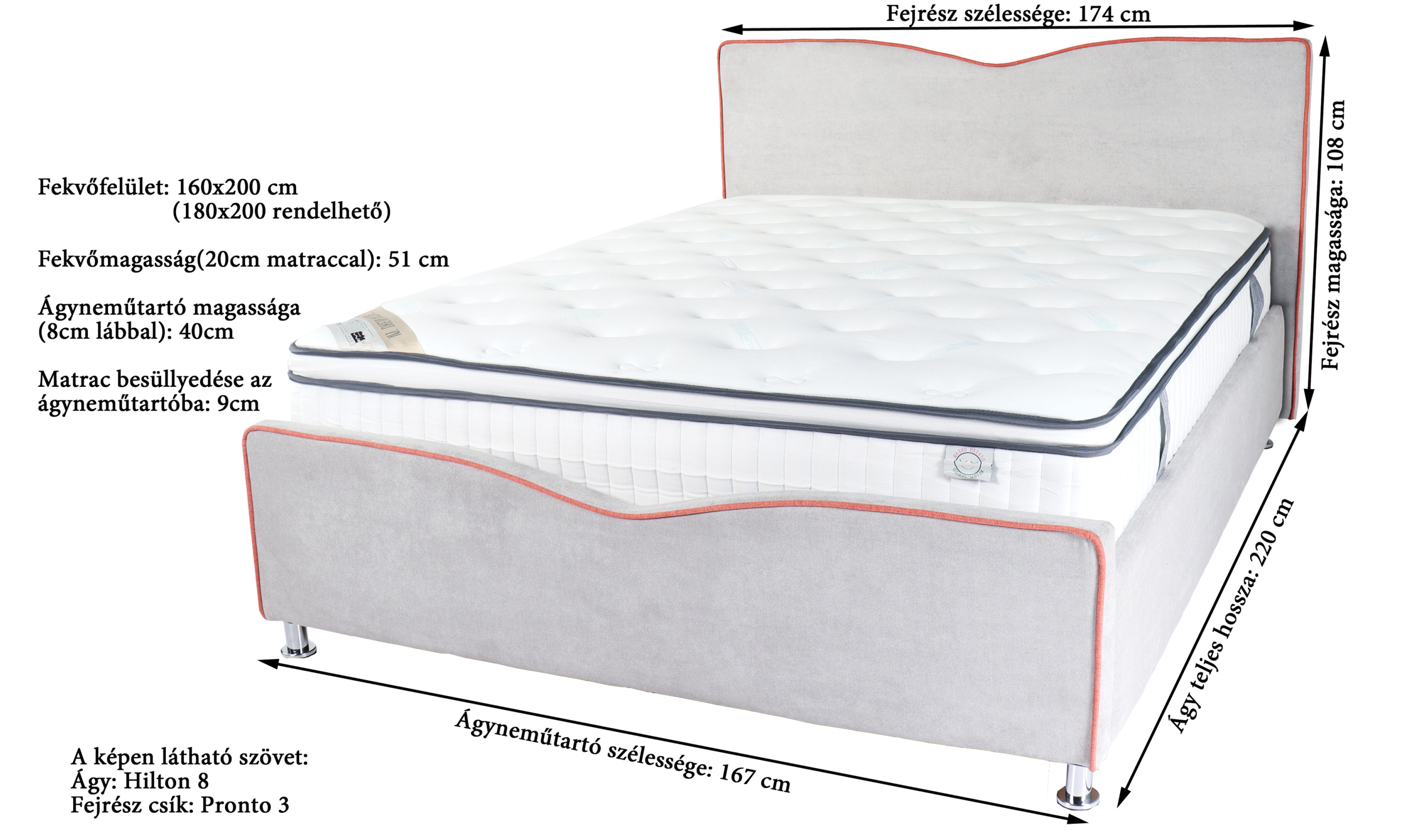 Fekvőfelület: 160 cm x 200 cm