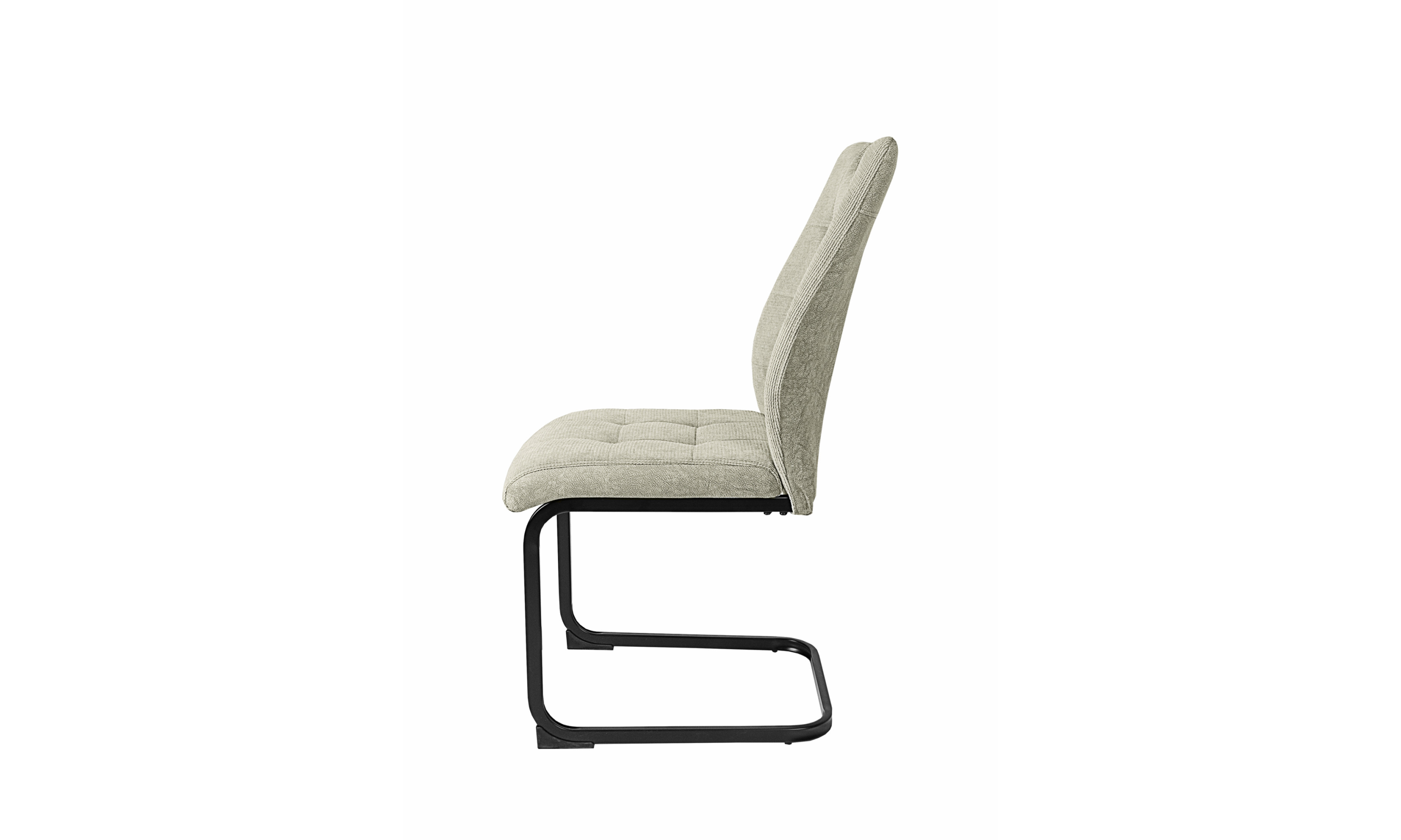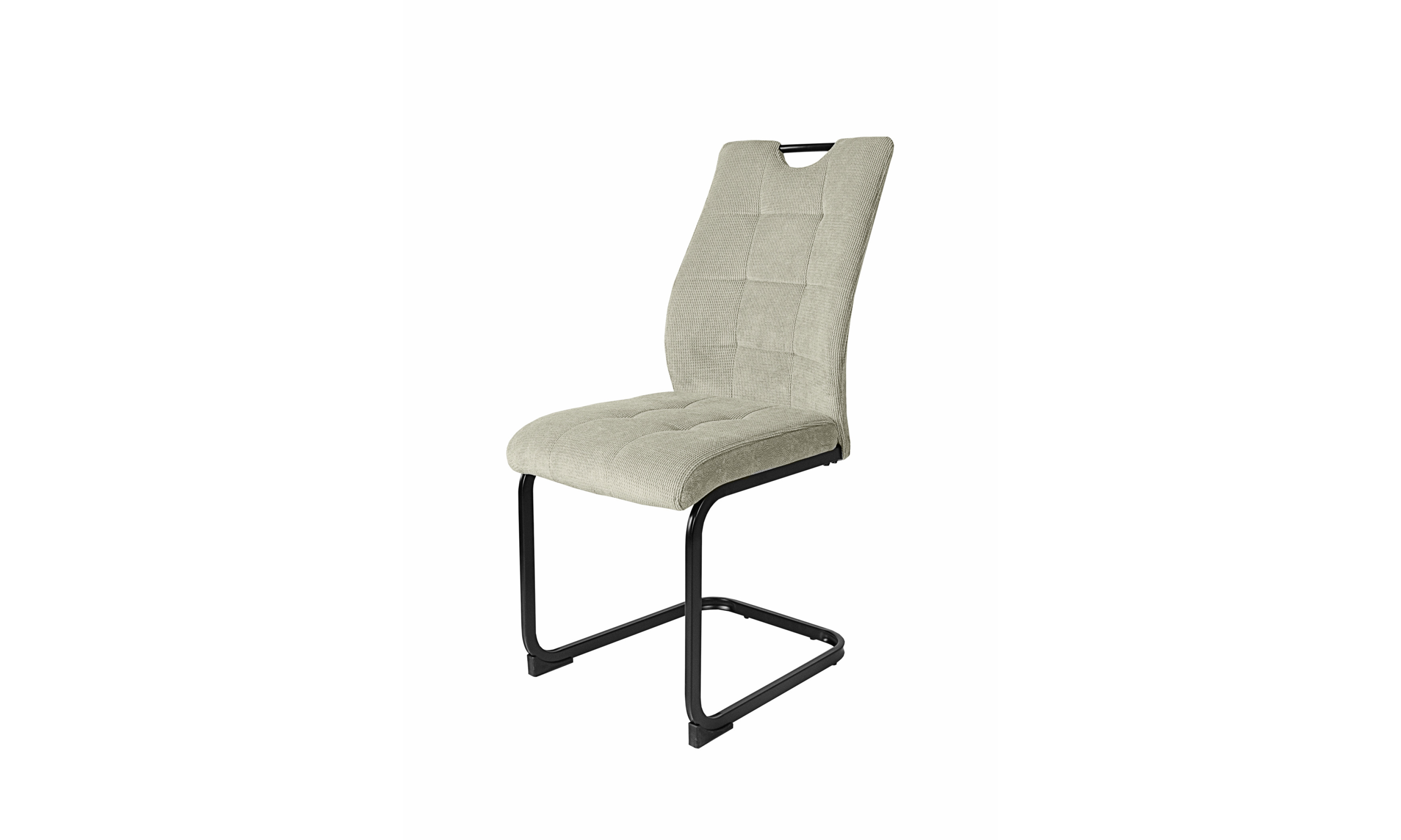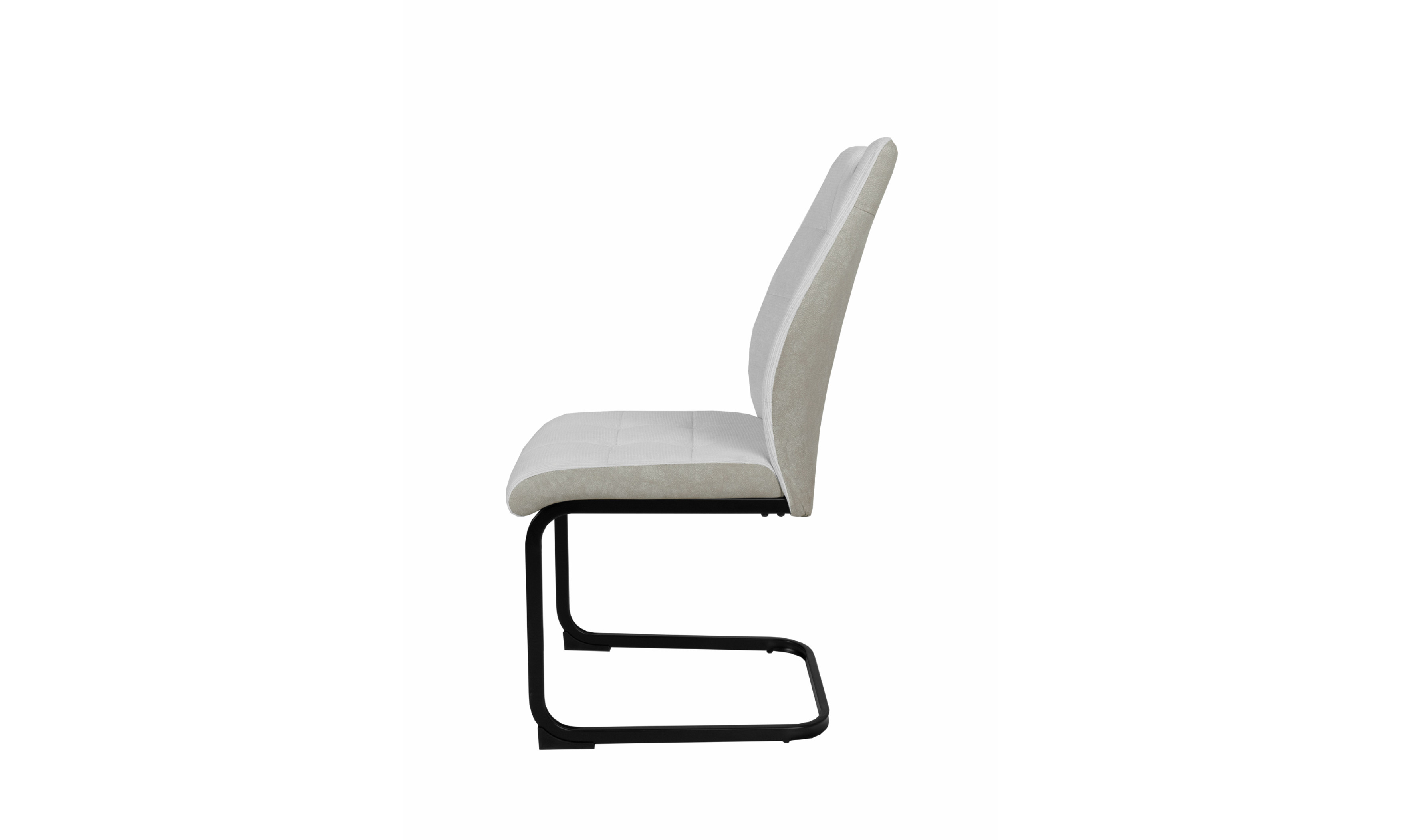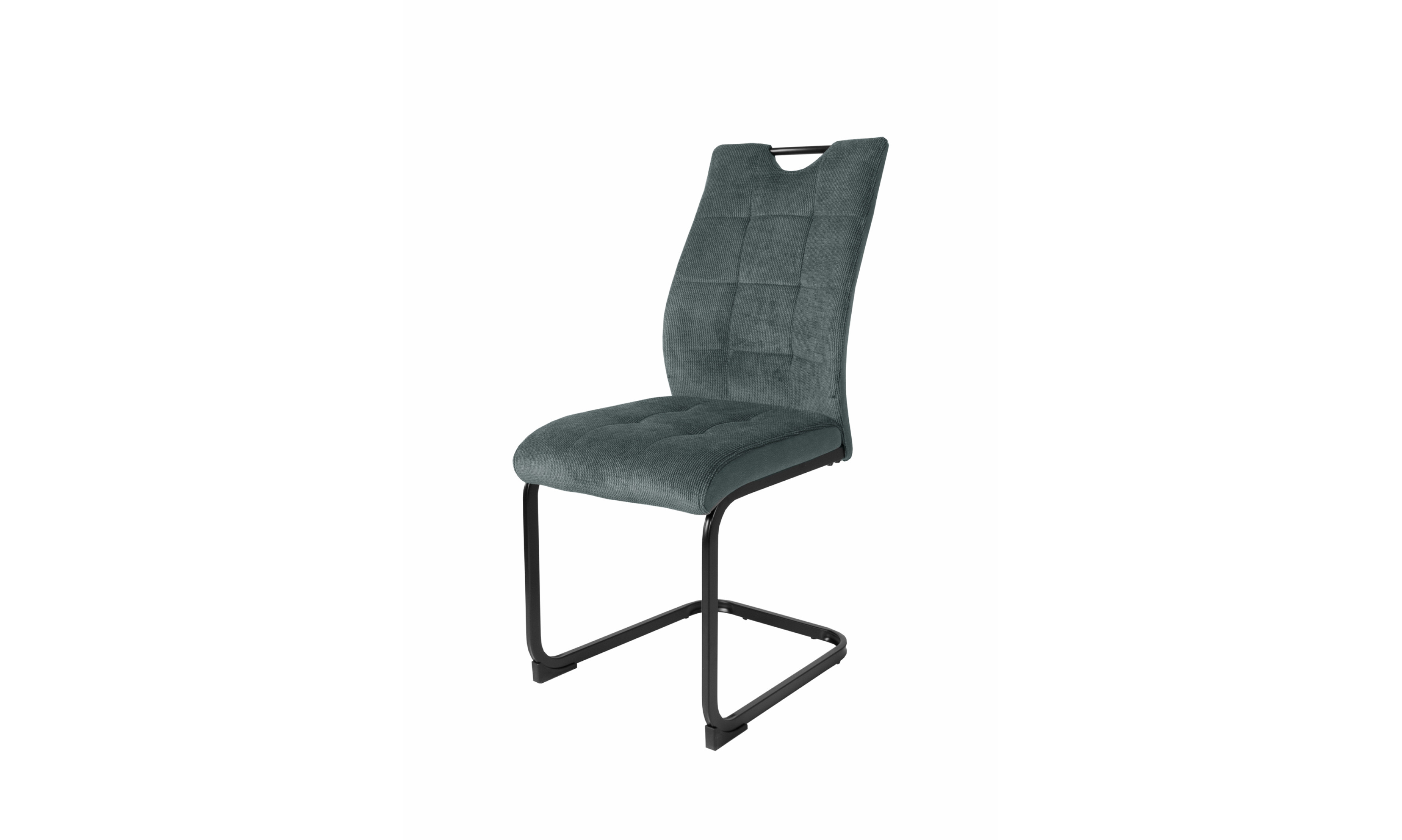 A Bruno szék szánkótalpas kivitelben készül a modern otthonok számára. Szövet ülőfelület és háttámla, hátoldalán velúr hatású kárpittal, fekete porfestett fém láb.