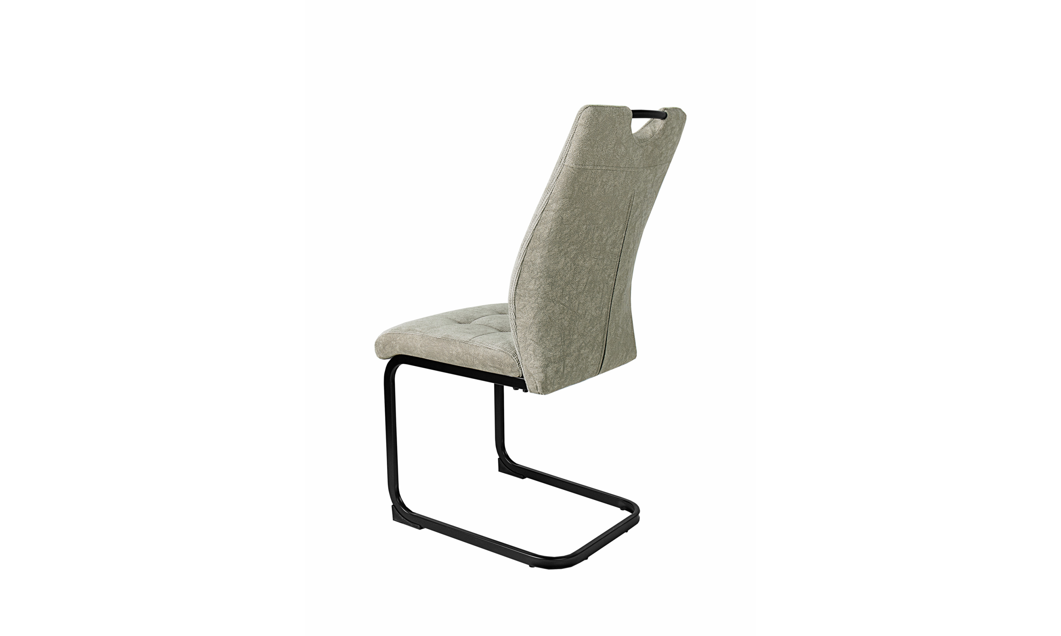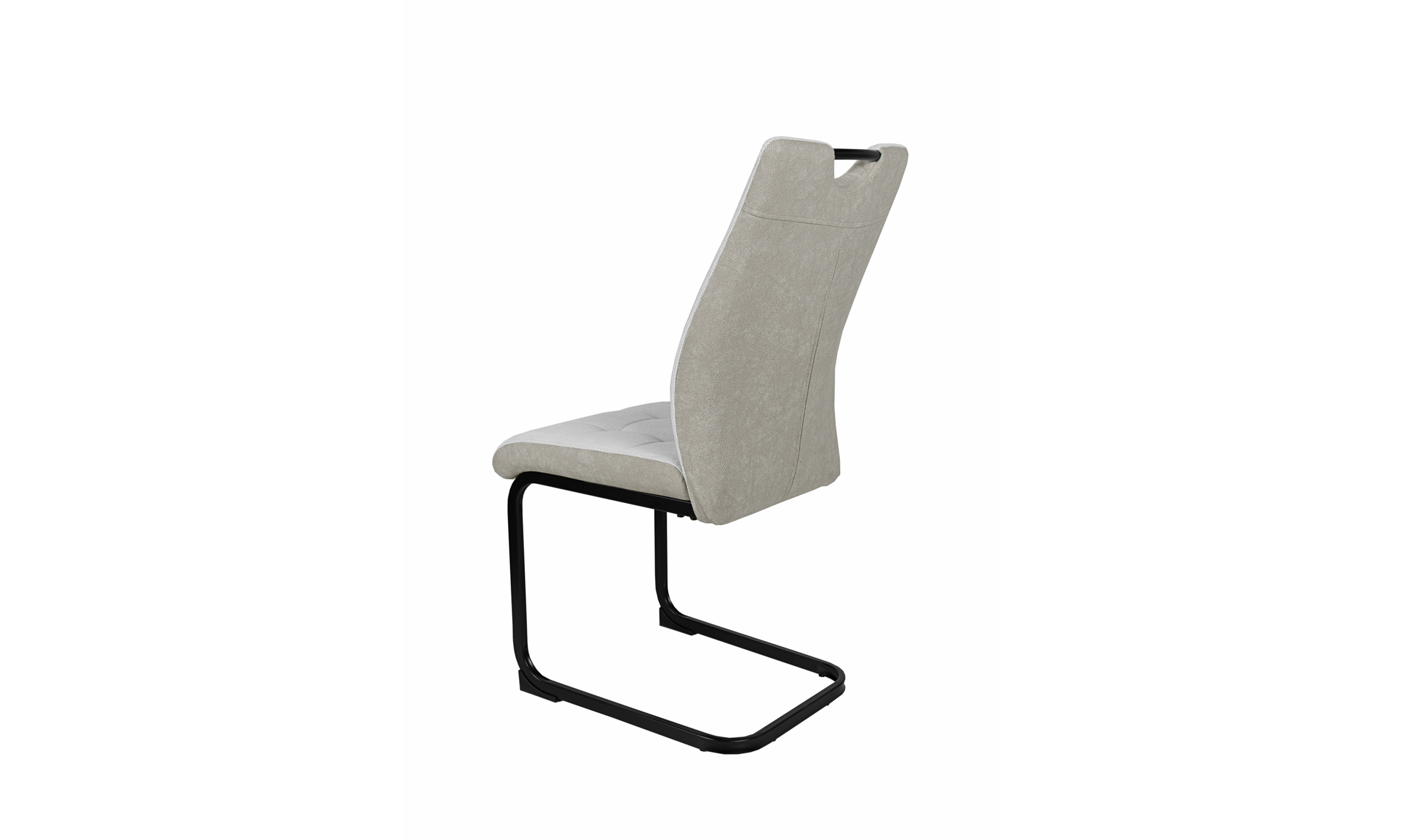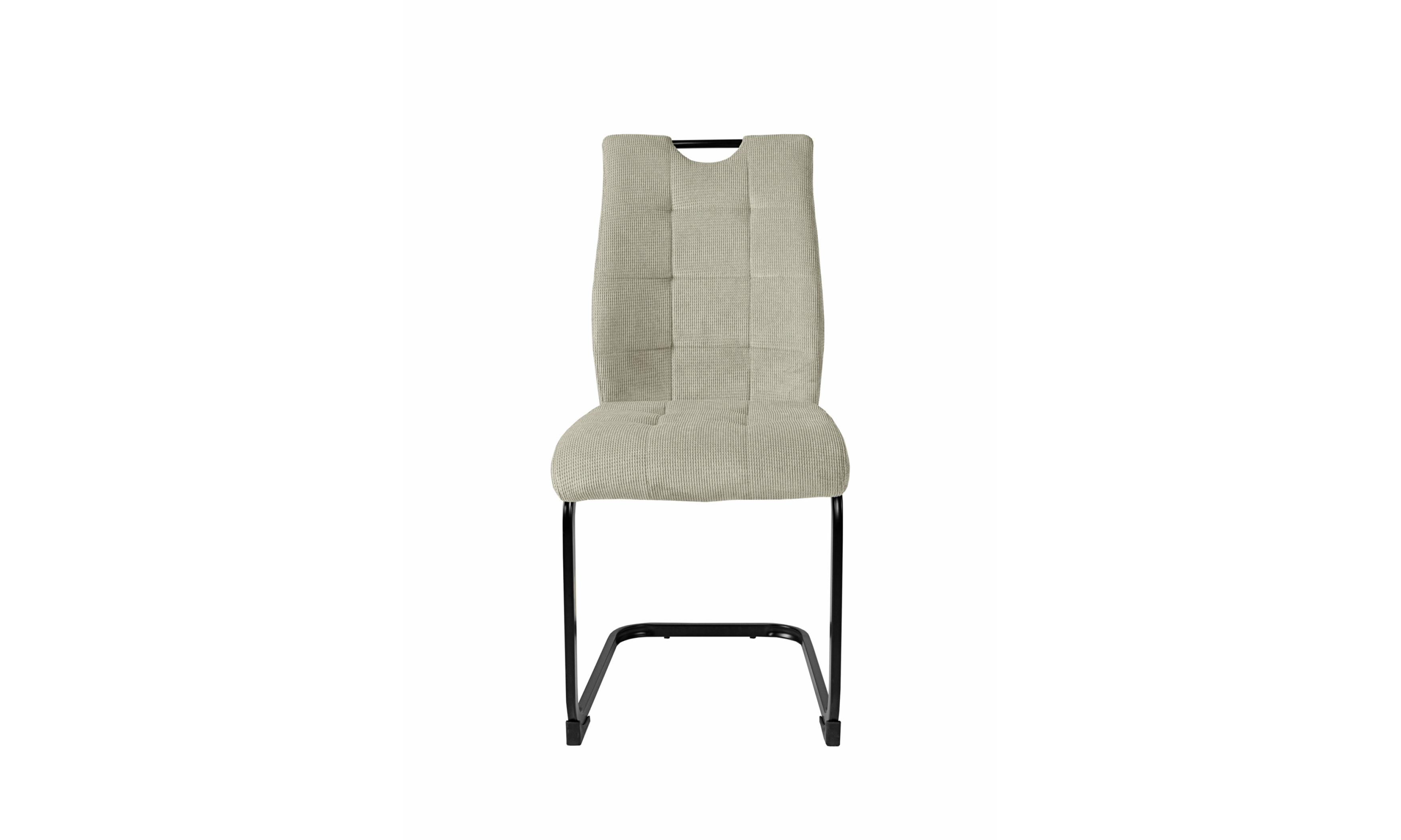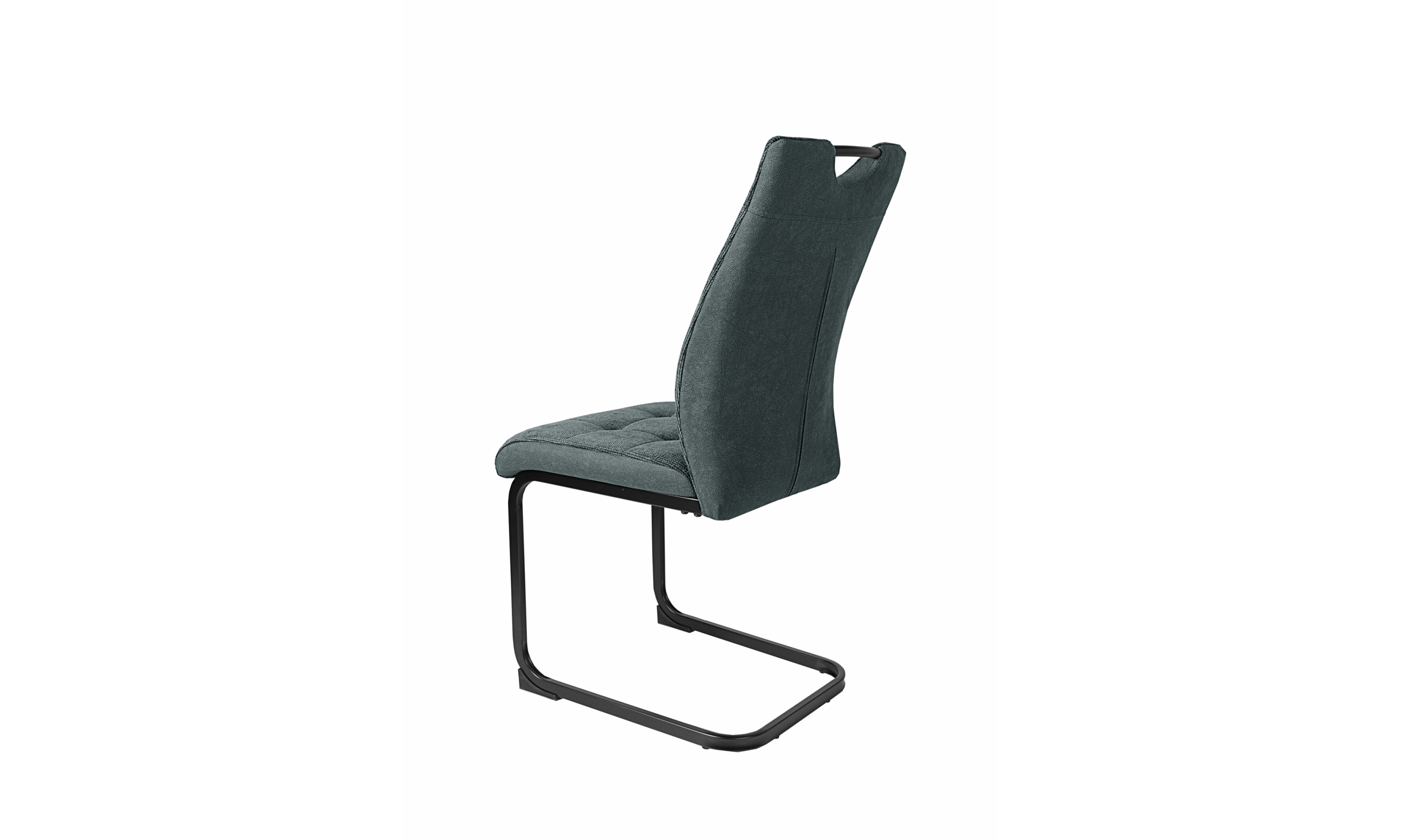 A Bruno szék szánkótalpas kivitelben készül a modern otthonok számára. Szövet ülőfelület és háttámla, hátoldalán velúr hatású kárpittal, fekete porfestett fém láb.