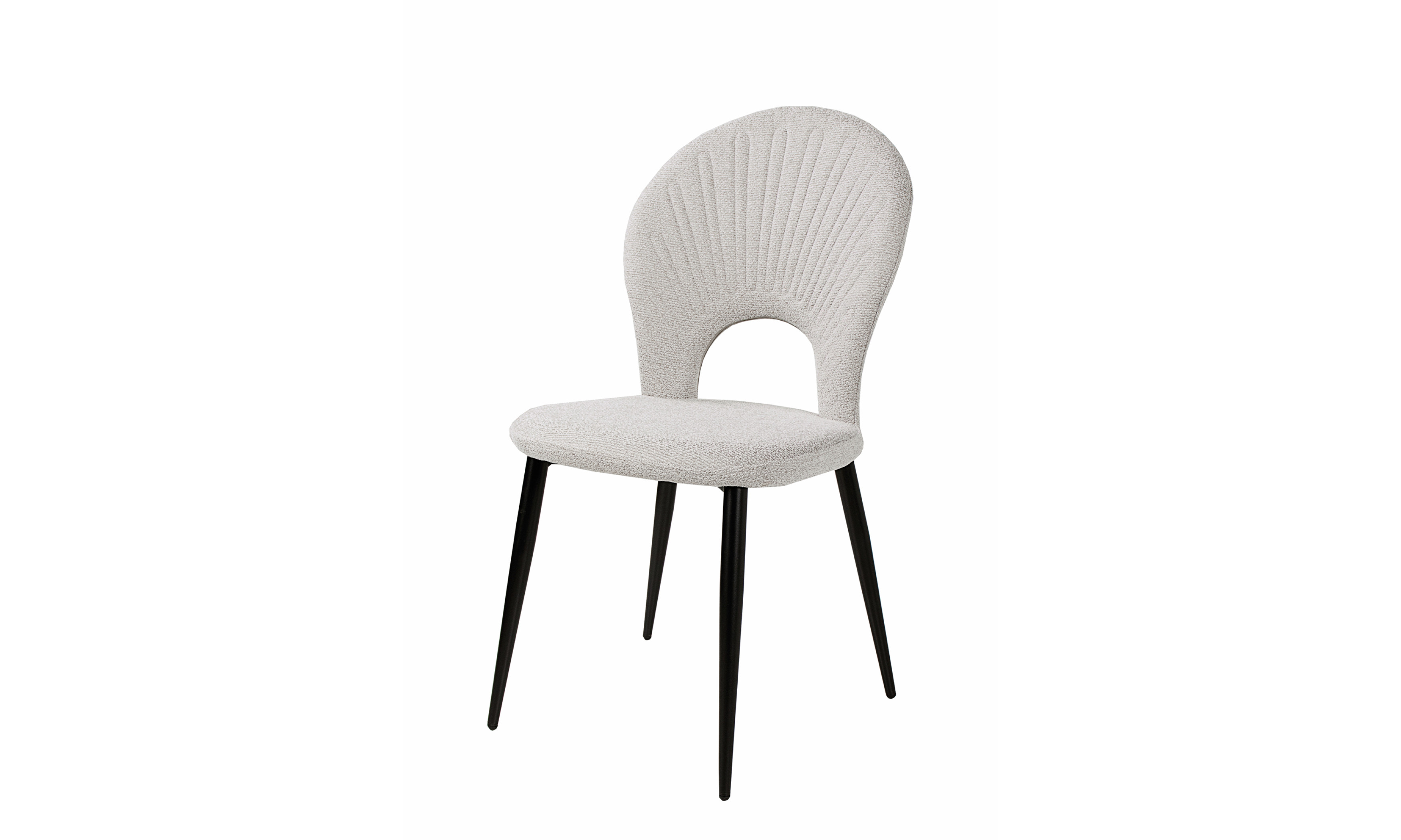 Különleges kagyló formájú háttámla, szövet kárpittal és fekete porfestett fém lábak: ez a Mango szék, amely 3 népszerű színben érhető el kínálatunkban.