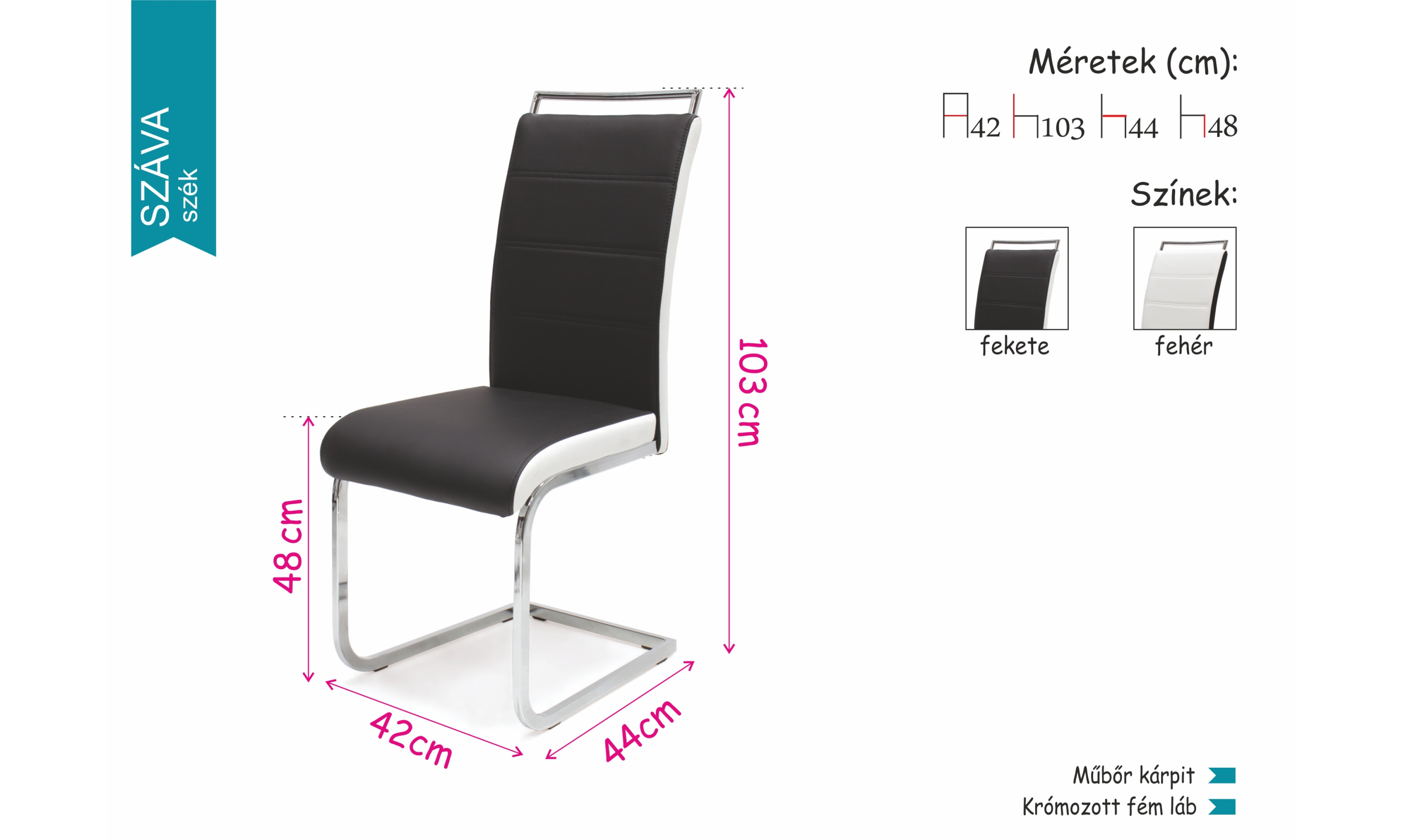 Választható szinek: fekete, -fehér