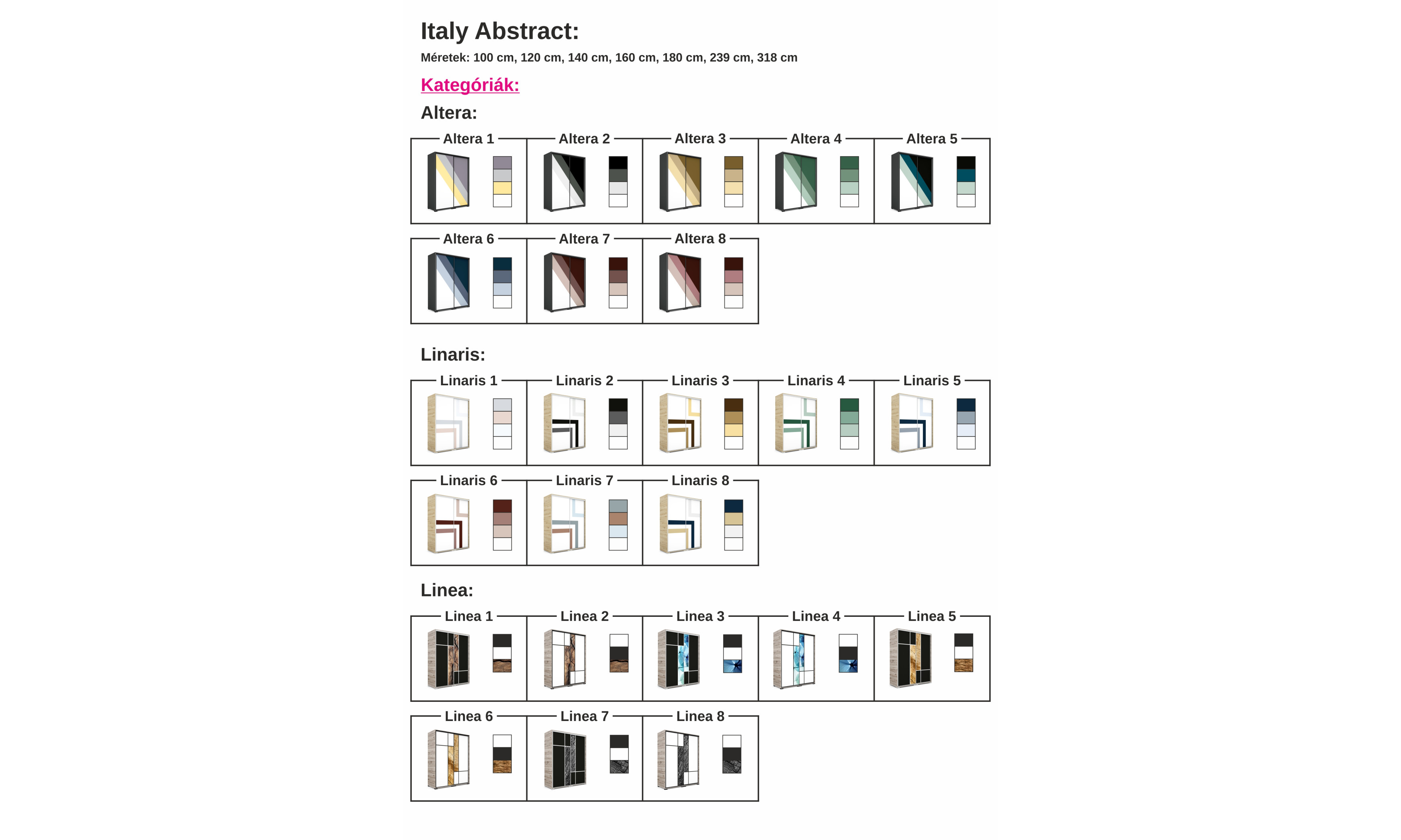 Az Italy Abstract gardróbunk egy olyan kollekció, ami ötvözi a modern lakberendezést és a tolóajtós gardróbok praktikus megoldását.