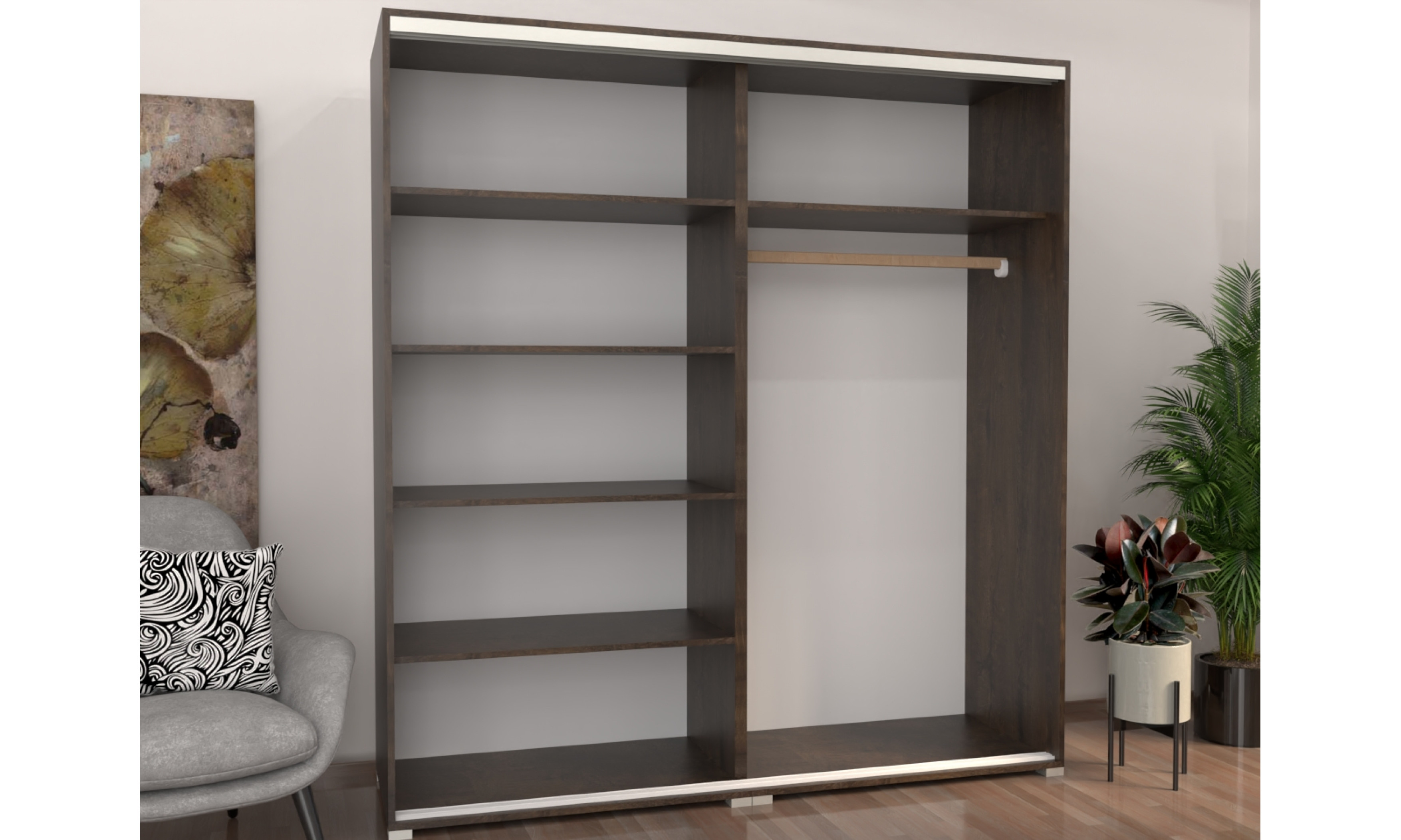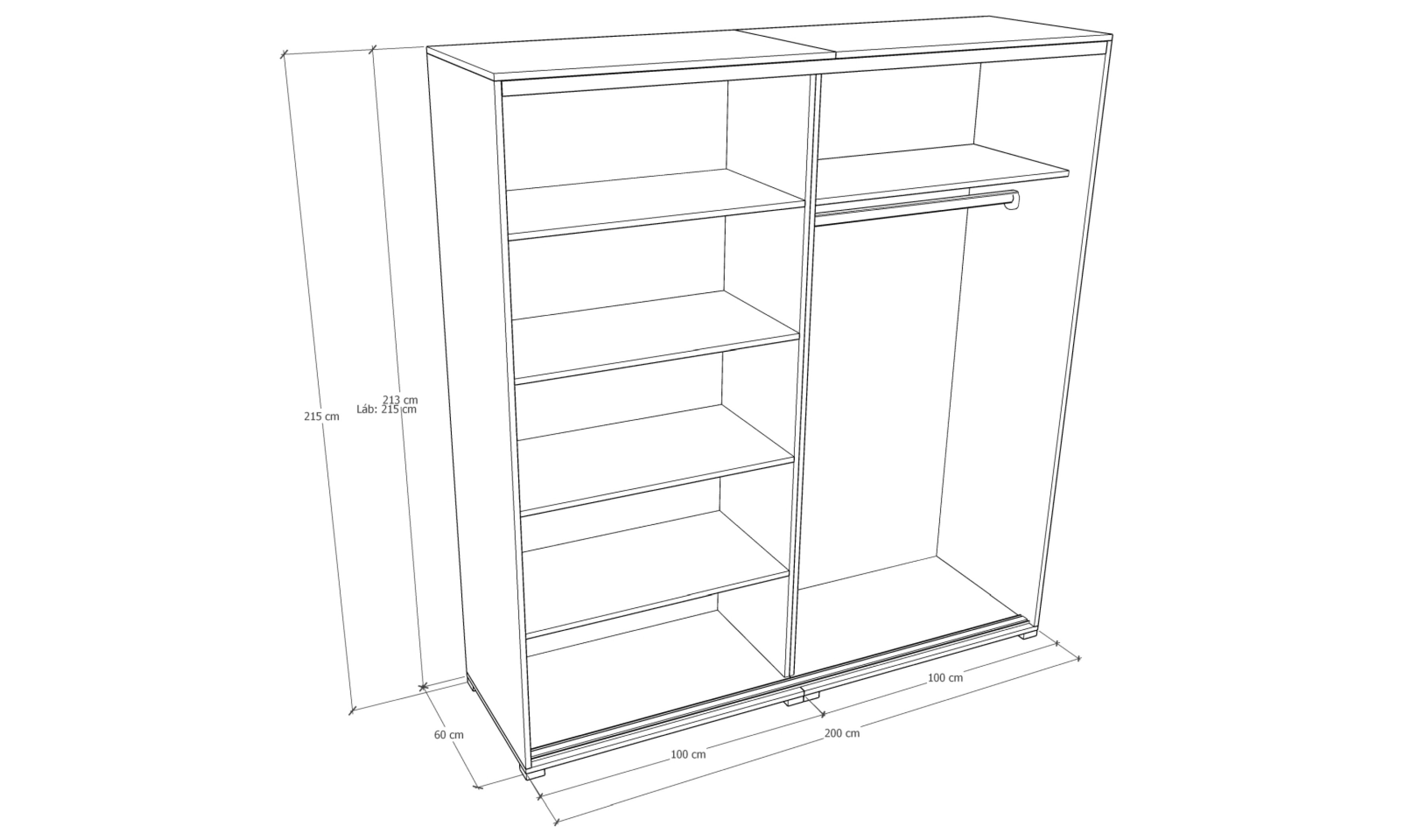 18 mm laminált faforgácslap, ABS élfóliával zárva, köldökcsapozással összeszerelve, hátfal 3 mm-es HDF lemez tűzőkapoccsal rögzítve.