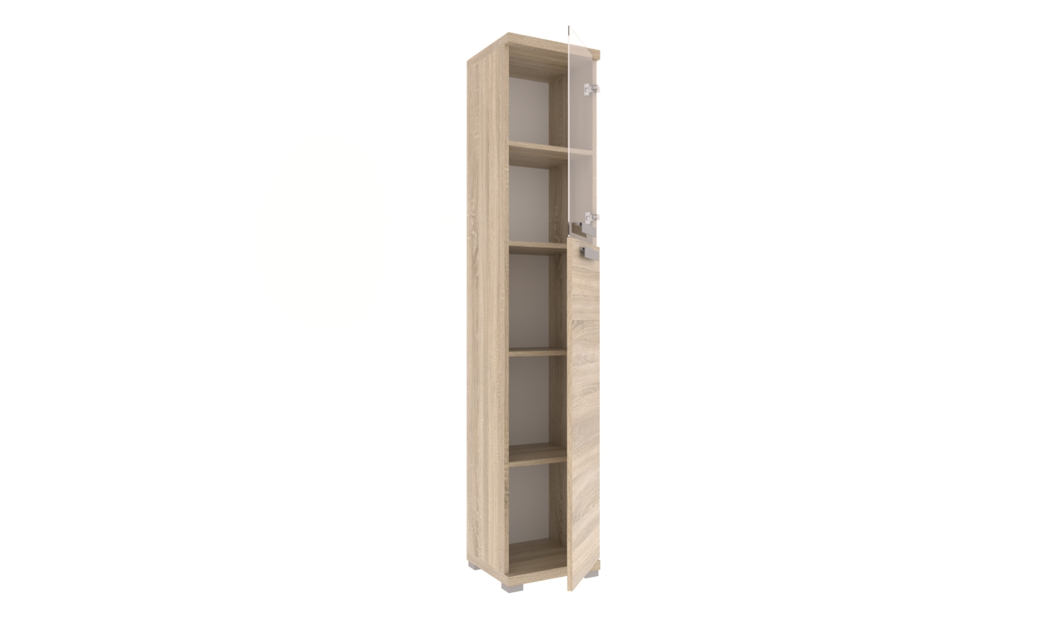 Az iroda elem 18 mm-es laminált bútorlapból ABS élzárással és köldökcsapozással készül. A hátfal a zárt részeken fehér színű 2,5 mm-es HDF lemez, mely tűzőkapoccsal van rögzítve.