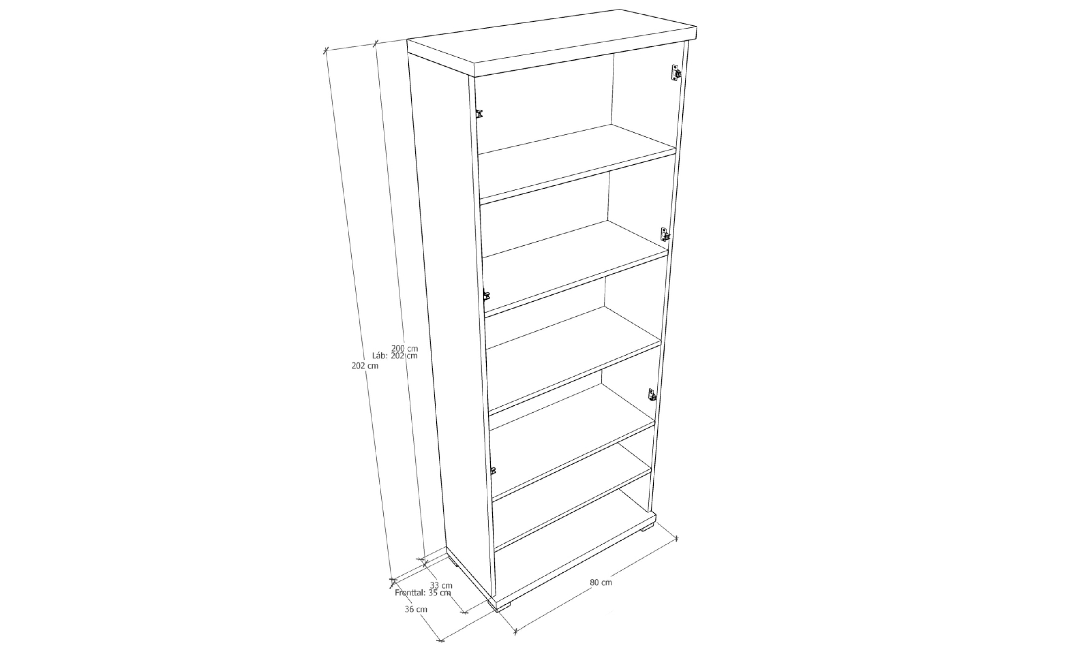 Az iroda elem 18 mm-es laminált bútorlapból ABS élzárással és köldökcsapozással készül. A hátfal a zárt részeken fehér színű 2,5 mm-es HDF lemez, mely tűzőkapoccsal van rögzítve.