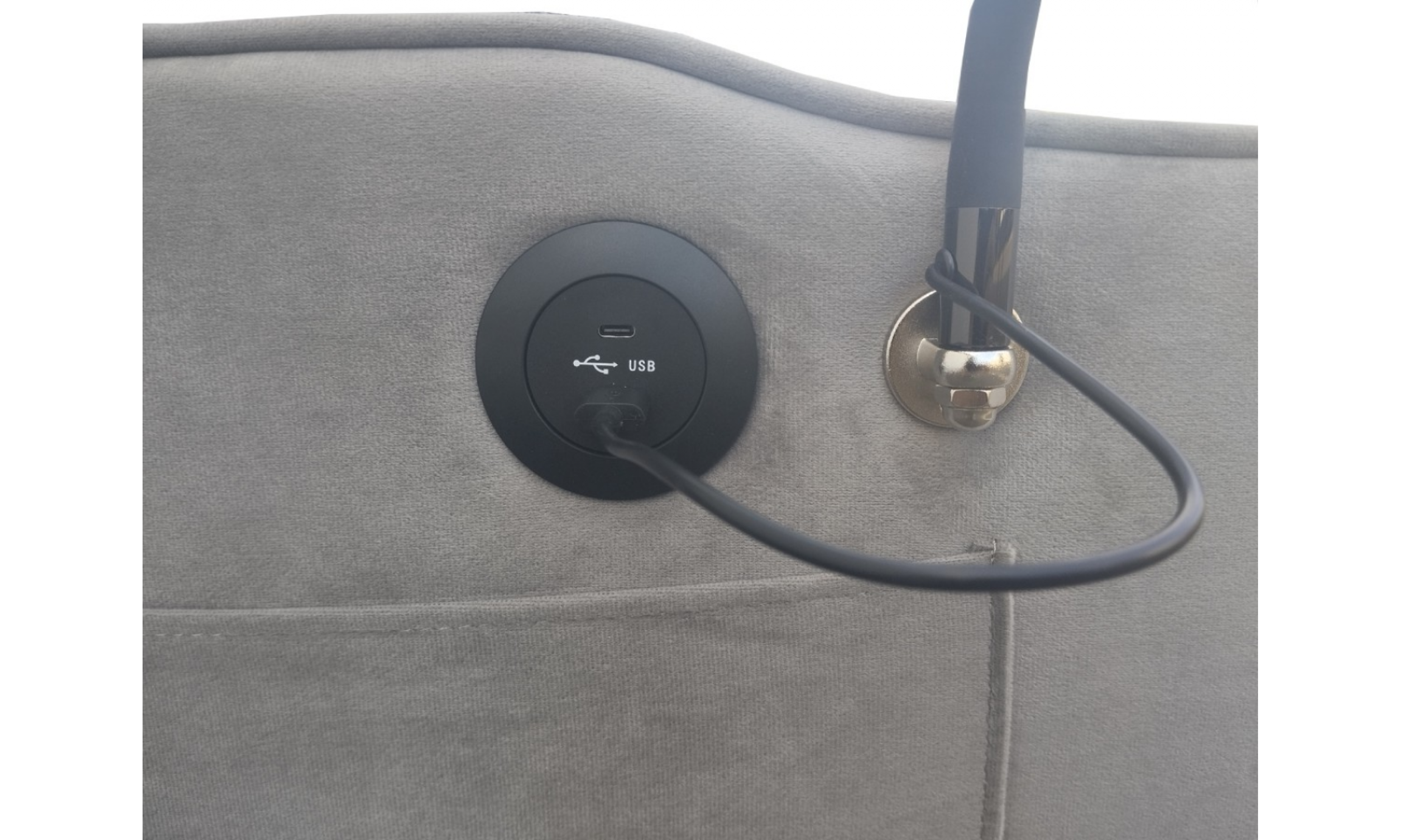 UBS- C töltő a karfán. A karfán zsebek találhatóak.