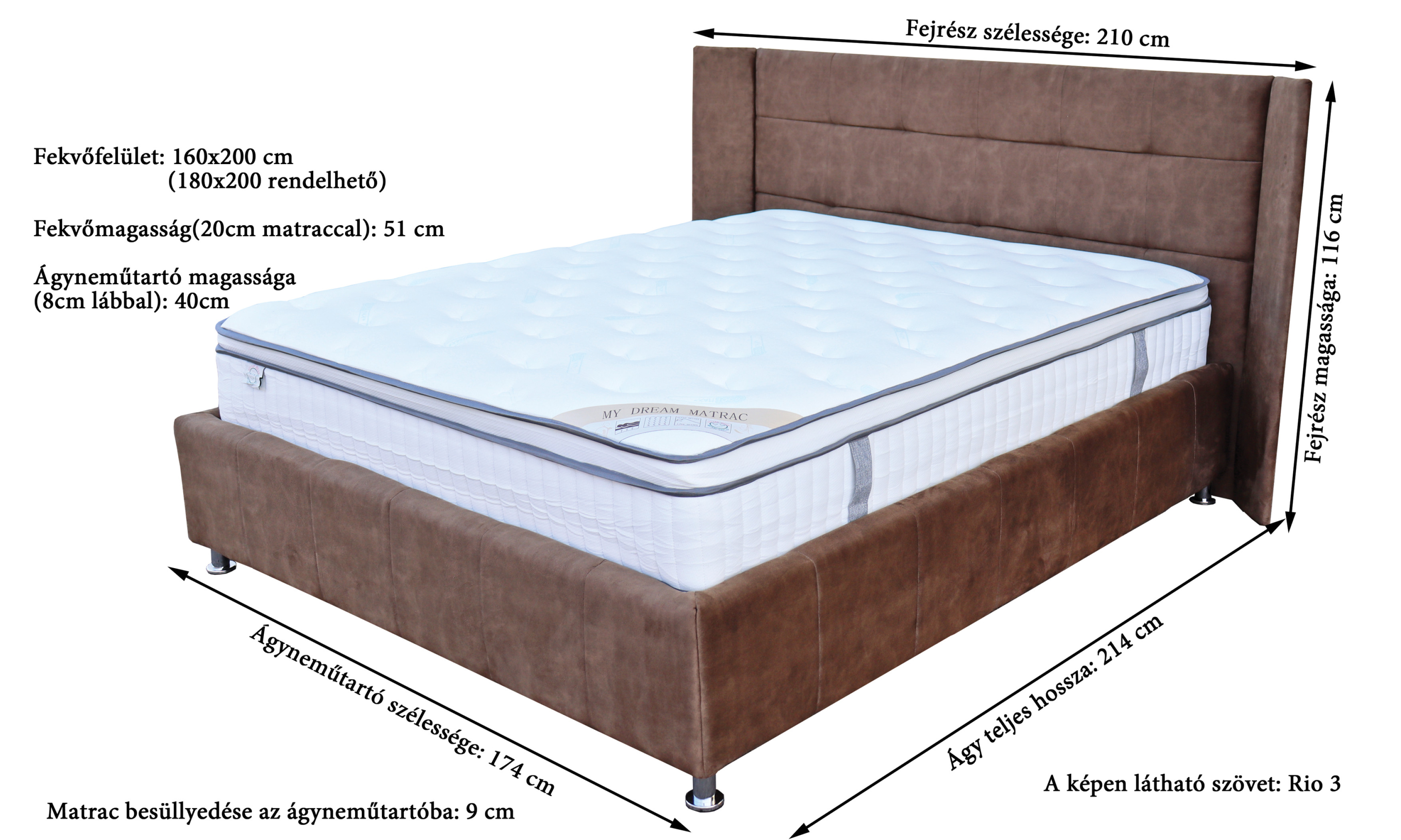 Fekvőfelület: 160 cm x 200 cm
