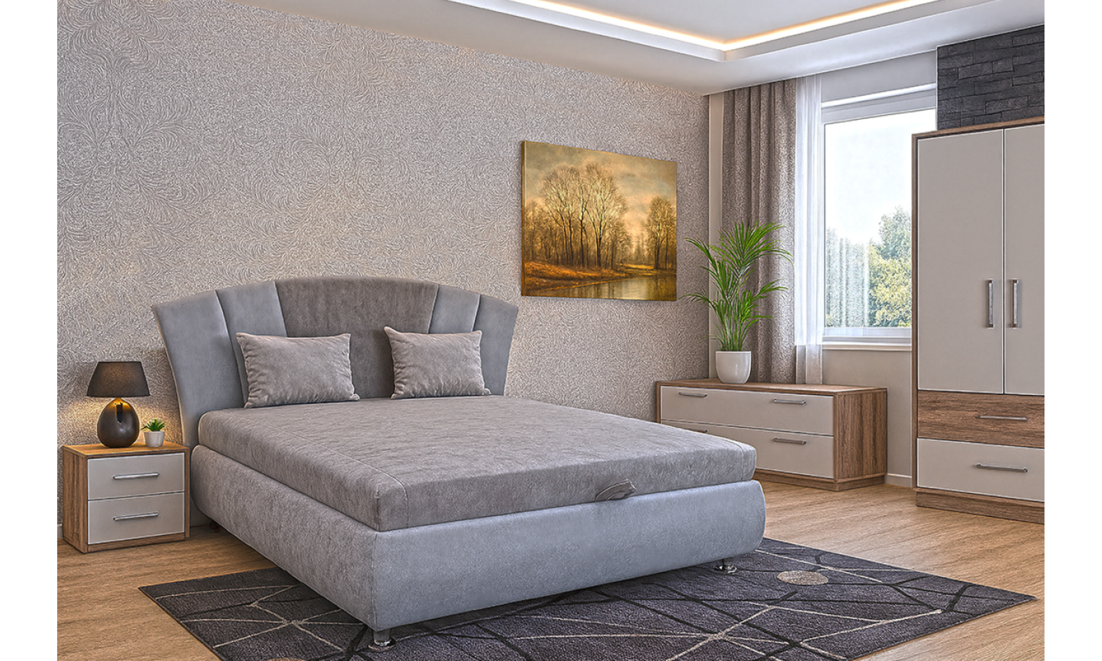 erősített bonellrugóval vagy nagy rugalmasságú vastag habbal készül, fehér bútorlapos ágyneműtartós, króm színű lábakkal, 2 db párnával
