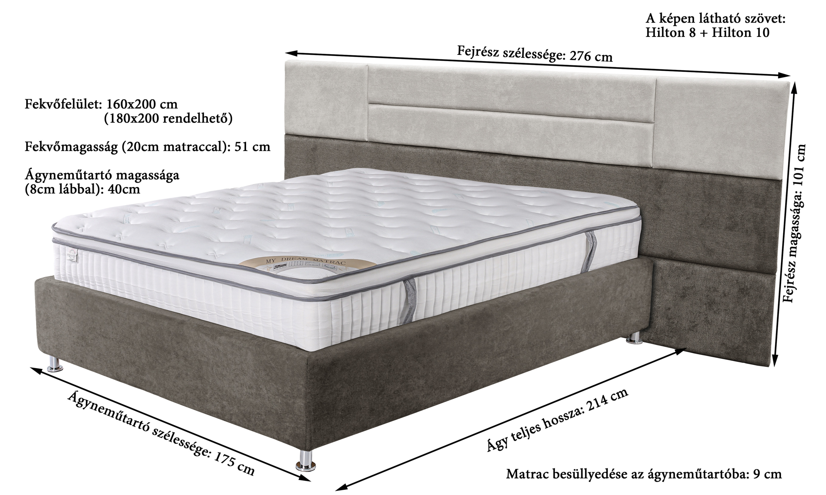 Fekvőfelület: 160 cm x 200 cm