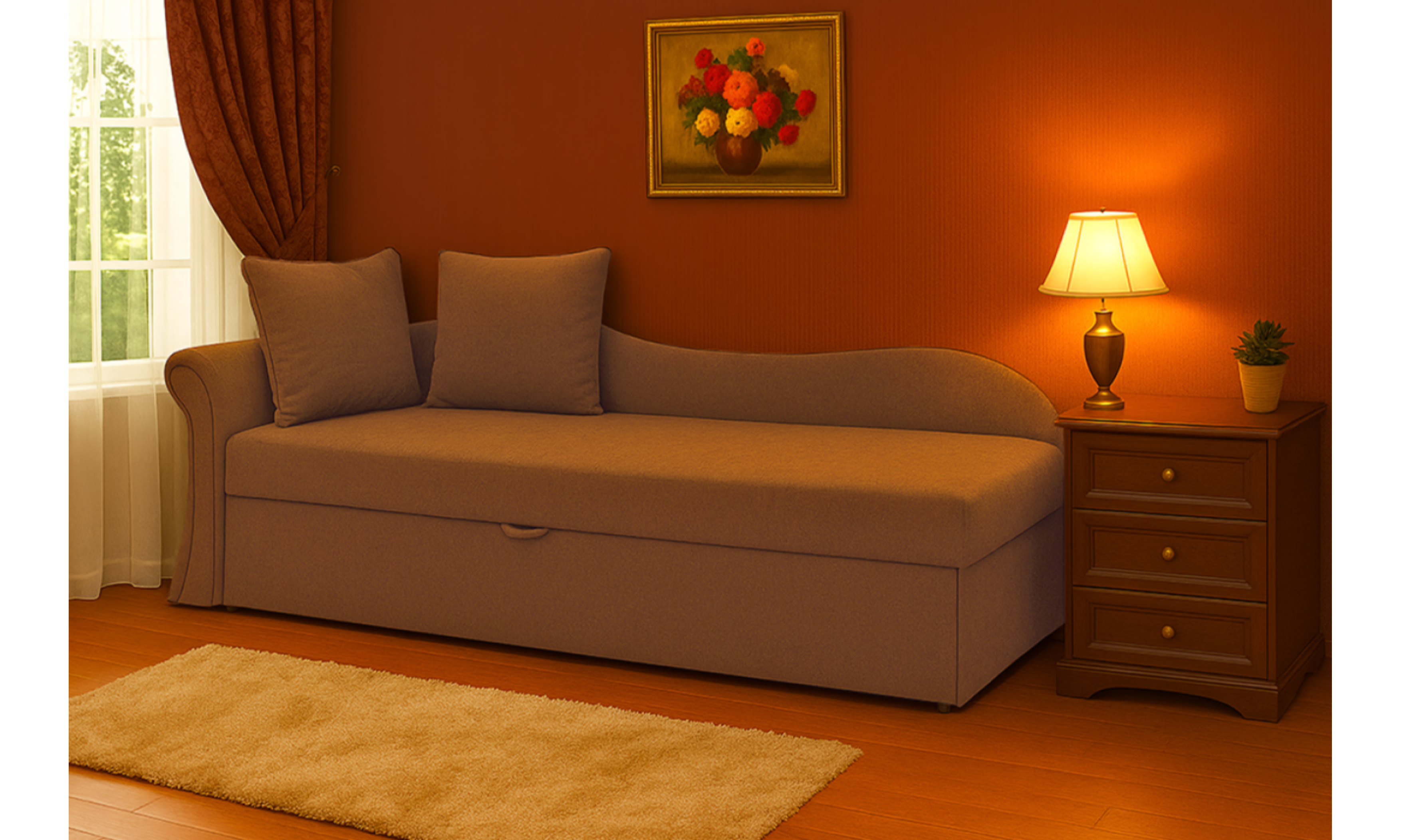 Ágyazható, ágyneműtartós, magas fekhelyes.