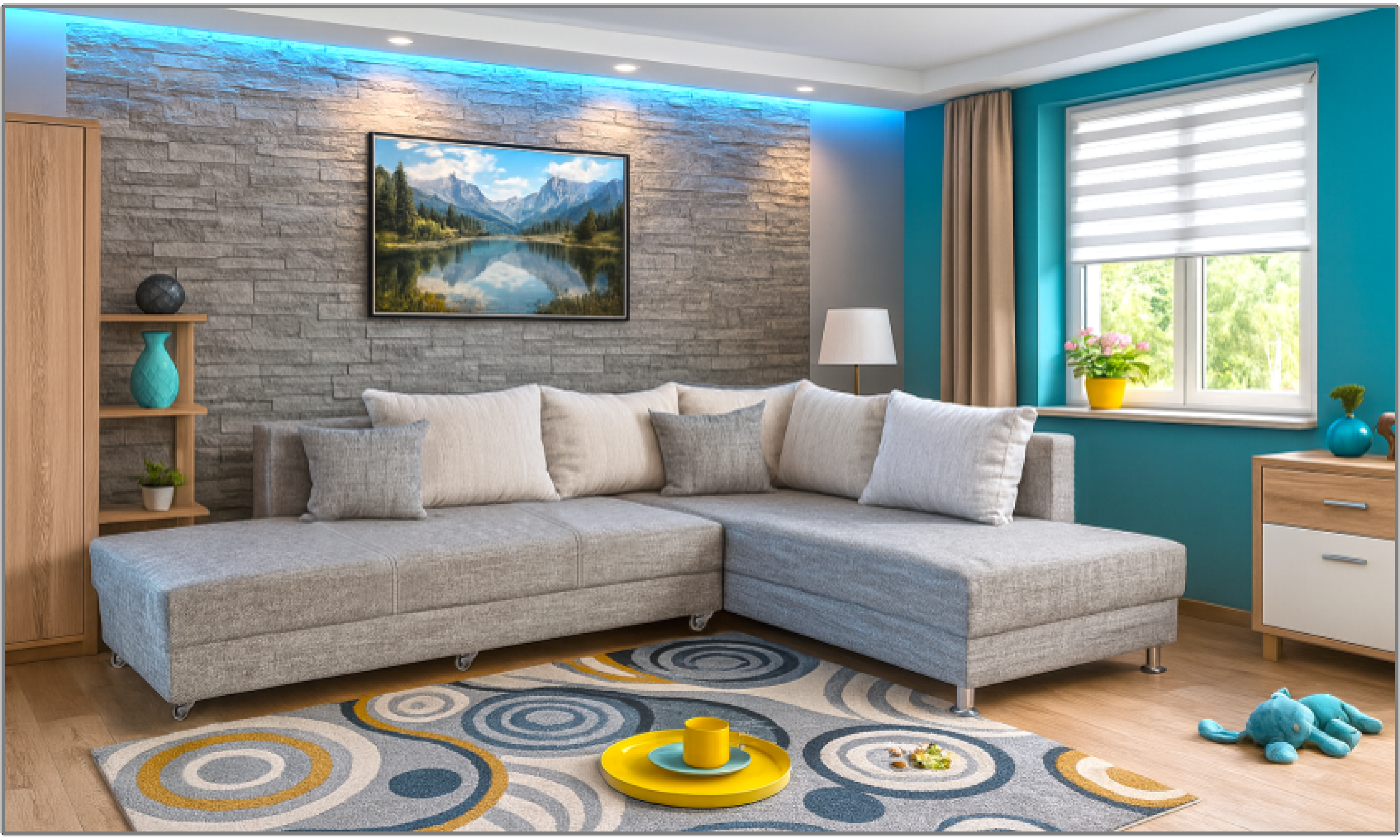 Az elforgatható elem, 6 db nagy teherbírású, préselt acél villaszerkezetes, nyommentes, gumis futófelületű görgővel szerelt, ezért teljesen önjáró. Ennek köszönhetően a vezetősínről leemelve azt, a lakás bármelyik részére átguríthatjuk. Az elforgatható elem rögzítéséről, bármely pozícióban, a 4 db kerék és irányfékes görgő gondoskodik
