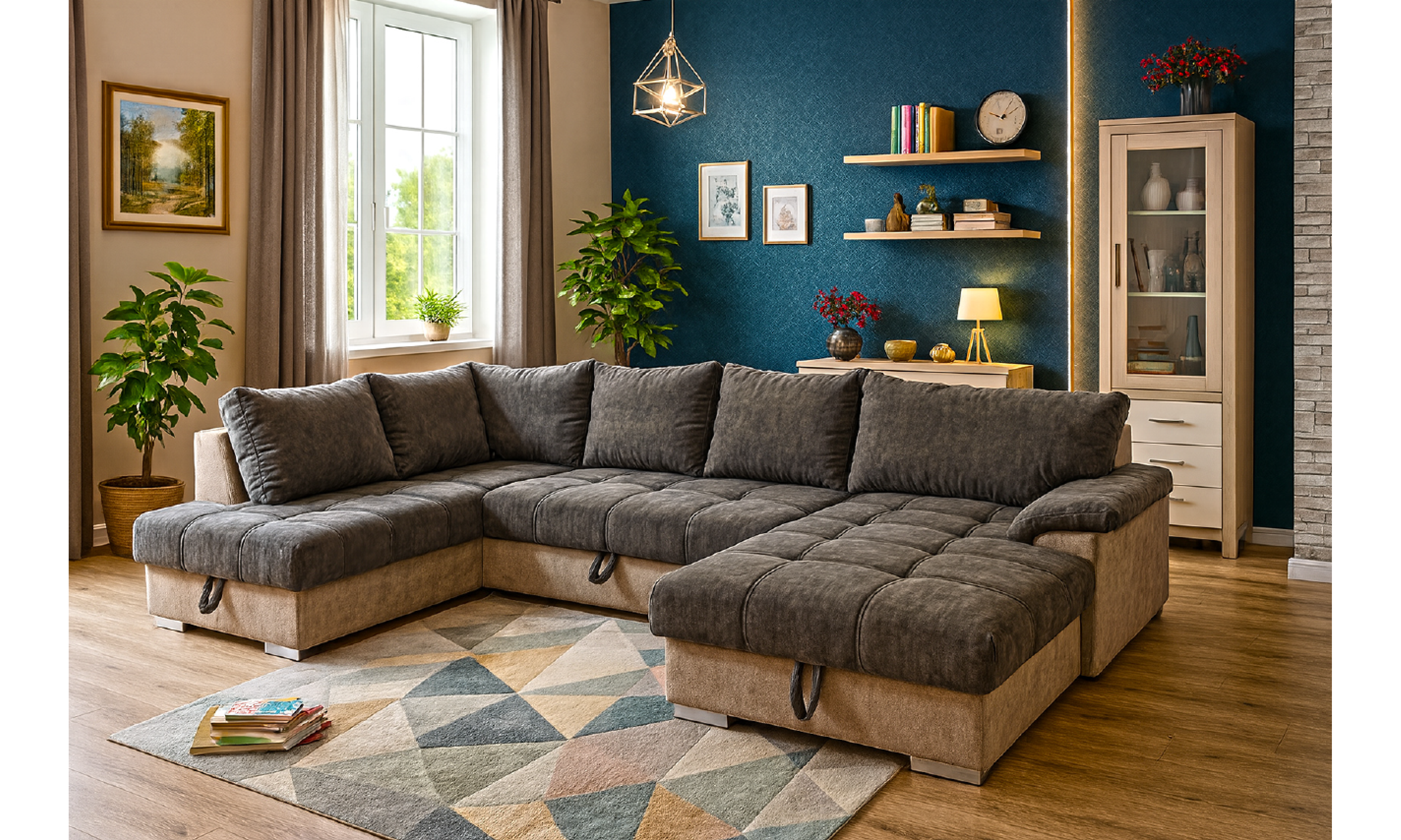 külső méret: 336 x 193 x 188 cm, fekvőfelület: 220 x 140 cm, ülőmagasság: 44 cm, háttámlamagasság: 80 cm, magasság párnával: 90 cm