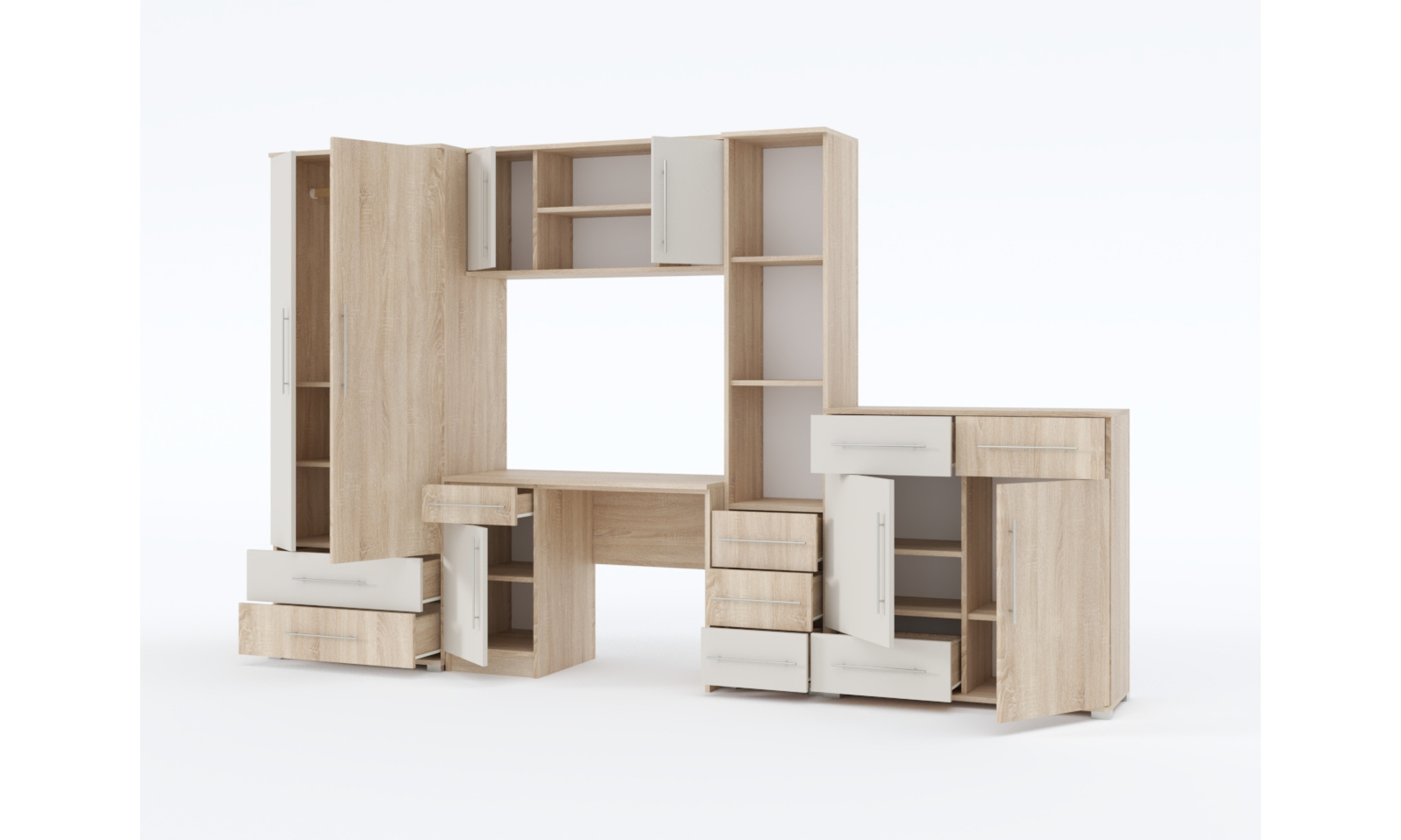 A korpusz fehér bútorlapból, E12 fogantyúval és SZ1 ezüst fix bútorlábbal készült bútor ára: 237800 Ft
